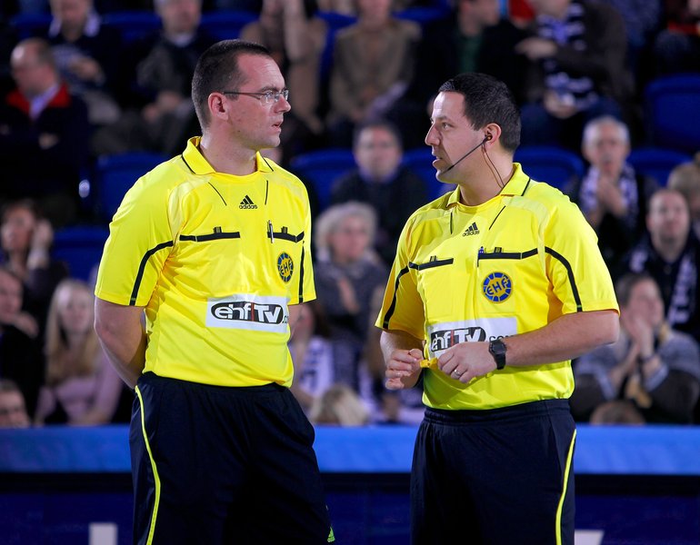 | Antonio Pribanic und Trainer Laszlo Skaliczki. | Rajko Prodanovic. | Die Schiedsrichter Marko Mrvica und Dalibor Jurinovic besprechen sich. | Kim Andersson. | |||
