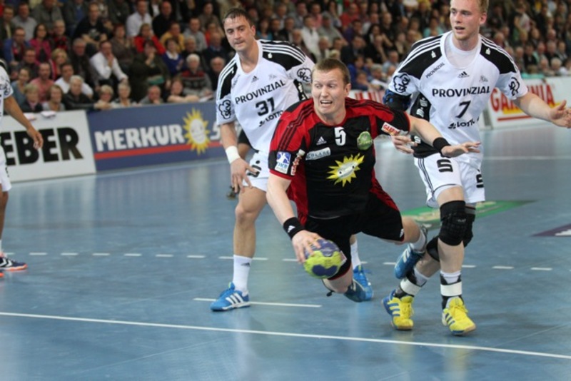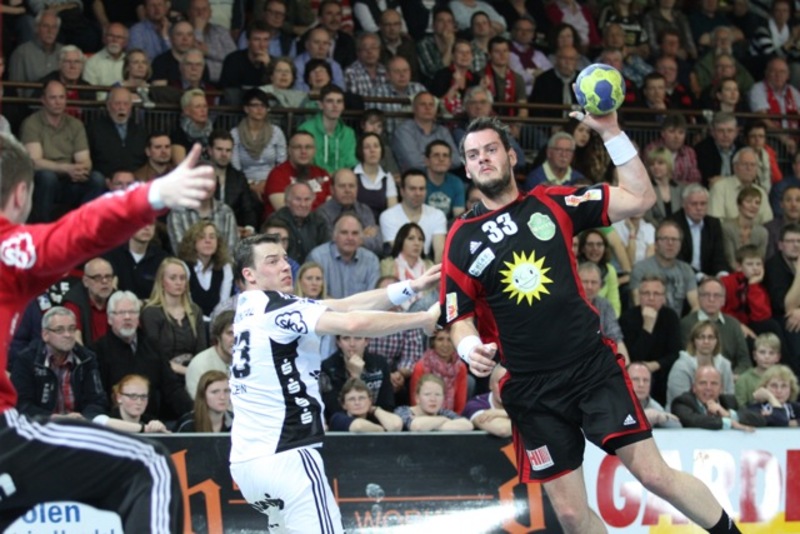 | Rene Toft Hansen. | Spielszene. | Alfred Gislason. | Marko Vujin. | |||