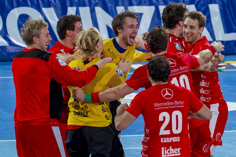 | Jubel bei Melsungen. | Filip Jicha. | Per Sandström. | Patrick Fahlgren. | |||