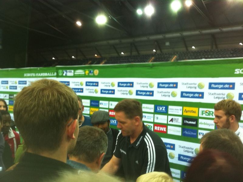 | Die dritte Halbzeit: Nach dem klaren Sieg beim SC DHfK Leipzig schrieben die "Zebras" hunderte Autogramme. Dicht umringt war auch Alfred Gislason. | Anpfiff in Leipzig. | Vor dem Spiel in Leipzig. | Der THW-Fanshop in Leipzig. | |||