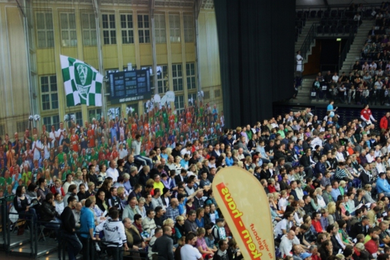| Vor dem Spiel. | Vor dem Spiel. | Die Kieler Bank. | Volle Halle in Leipzig. | |||