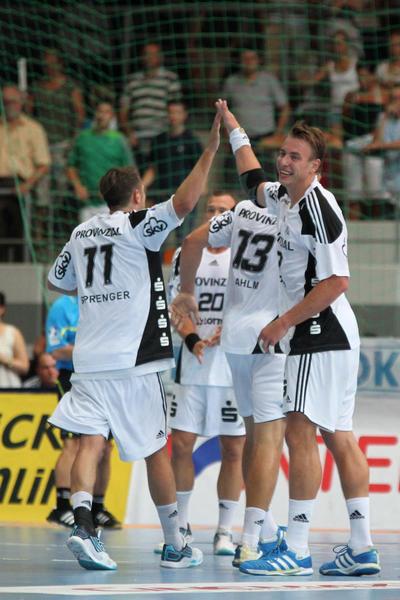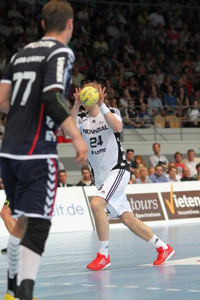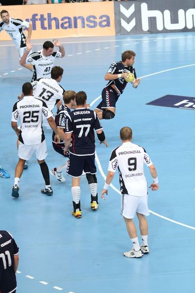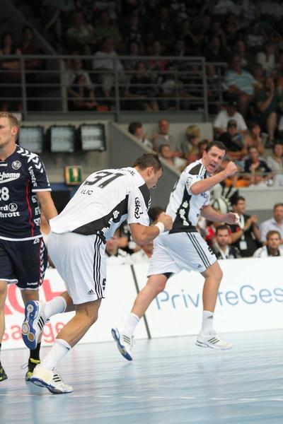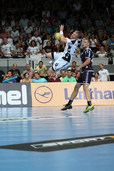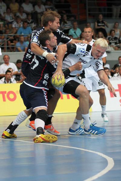 | Aron Palmarsson. | Daniel Narcisse. | Spielszene. | Supercup-Sieger 2012! | |||