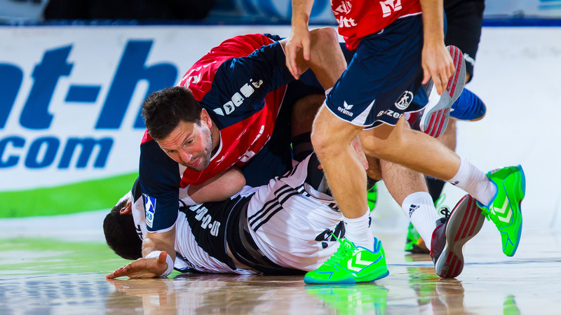| Steffen Weinhold. | Steffen Weinhold. | Kampf um den Ball. | Alfred Gislason. | |||