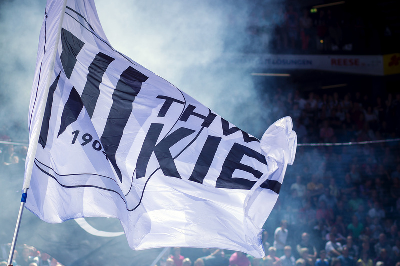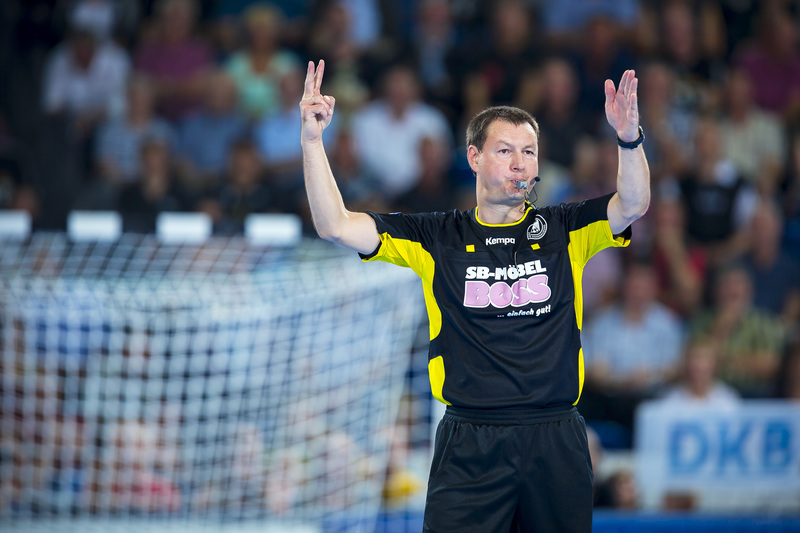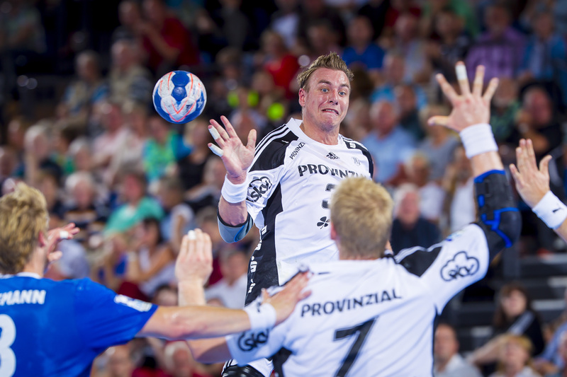 | Spielszene. | THW! | Rasmus Lauge. | THW-Hallensprecher Thomas Lorenzen. | |||