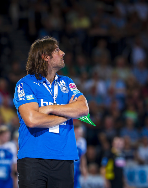| THW-Hallensprecher Thomas Lorenzen. | Duje Miljak. | Enttäuschung nach dem Spiel. | Schiedsrichter Jörh Mahlich. | |||